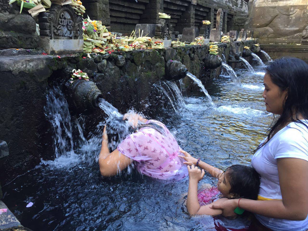 当时较为惊奇的是,在庙宇后面的池塘里,鸟绕圈低飞,叽叽喳喳不停地吵闹着,却没有一只偏离航线,飞出池塘之外,只是不停不停地绕圈绕圈绕圈,在我看来也是一种奇景了。 然而轮到我和小伙伴时,也有检察官跟我索取小费,但却是以很友好的态度询问我是否愿意给予小费,于是我便拿出10RMB结束了这次的对话,而我朋友则是分文未取顺利通关。因此最后,我还是想呼吁大家不要像我一样这么心软,事后想了想这只会助长关口小费这种不良的风气。 同时,我感到更气愤的是,这只针对中国游客的行为也不知道是在什么样的风气与环境下养成的。 水神庙和海神庙算是第5日的重点行程。幸运的是,正值祭拜的日子,当日在水神庙也见识到了当地人虔诚的参拜仪式。水神庙相较于其他庙宇大了很多很多,也相对教新,同时里面还承包了巴厘岛植物园的职务,甚得当地人的喜爱。虽说水神庙的本体只是水中的一座庙宇,但当天的参拜活动还是让我们耳目一新。更值得一提的是,去往水神庙的路途中经过了非常大的水果市场,因此也有机会让我们尝试到了蛇皮果(我的最爱)、龙宫果(小伙伴最爱)之类东南亚的水果。当然为了防止店家胡乱开价,我们果断请求了我们的包车司机帮我们讨价还价。 和第二天的失望相反,第三天的旅程有些振奋人心,包车从金巴兰出发,一路游经各个景点,最后到达乌布酒店,算是和谐又较为完美的一天。在这里重点要讲一下圣泉寺、金塔马尼以及木雕村。