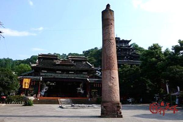图腾柱;这根石柱就在土家风情园的中央,高12米,直径为1.2米,这上面还用一笔连成的鲁班文写着“汇集武陵精神,传承土寨风情”十二个大字。图腾柱在土家人称它为擎天柱,读书人称它为图腾柱。图腾,是指原始社会的人认为跟本氏族有血缘关系的某种动物或自然物,一般用做本氏族的标志。世界上许多民族都是多源的,土家族也不例外,至今在湖北清江流域和湘西北酉水流域还存在信仰白虎和驱赶白虎的两种不同的习俗,前者认为自己是魂魄化为白虎的巴廪君后代,后者认为自己是以射杀白虎而著称的板楯蛮后代。